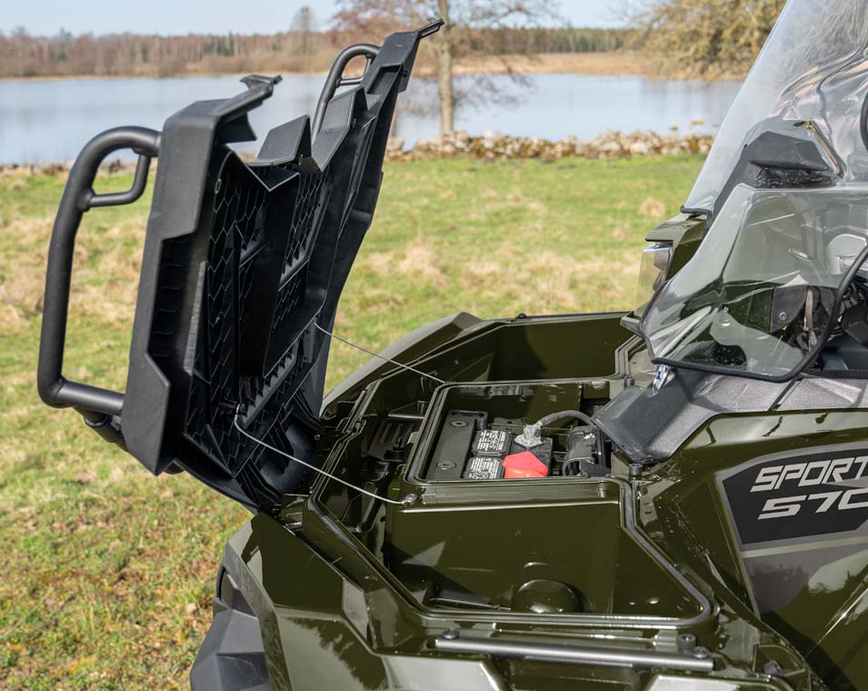 - Prise 12 volts, port de charge lente intégré, système de sécurité activé par code PIN, Rallonge de porte-bagages avant, support de treuil inclus, protections CV
